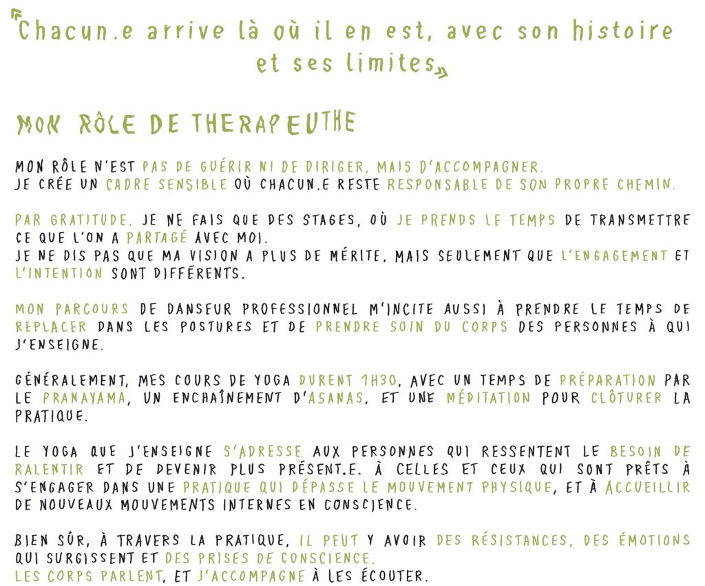 Rémy incarne la fluidité et la justesse; cela se ressent dans le déroulé de ses cours. Paisible, attentif, engagé, il est précis et clair dans ses explications, respectueux et bienveillant dans son accompagnement et la correction de nos postures. Un régal, tout en douceur, en rythme, en musique, sans pour autant lâcher l’exigence et la rigueur.